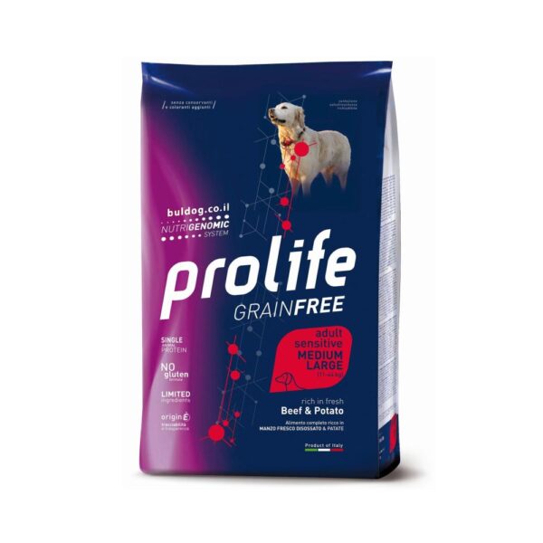 פרולייף לכלב ללא דגנים מדיום-לארג’ אדולט בקר ותפוח אדמה 10 ק”ג