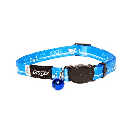 קולר לחתול תוצרת רוגז, מגיע במגוון עיצובים וצבעים, מגיע עם פעמון ואבזם פטנט מפלסטיק לפתיחה מהירה.