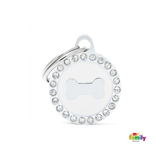 תג שם לכלב – גלאם עגול עם עצם צבע כסף משובץ אבני סברובסקי