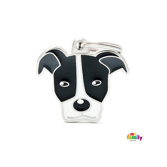 תג שם לפי גזע כלב – פיטבול שחור לבן