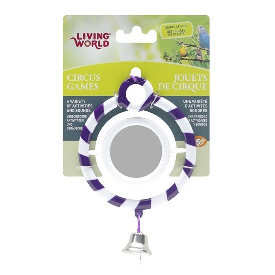 צעצוע משחק לתוכים, צעצוע צבעוני לתוכי קרקס עגול עם מראה ופעמון.