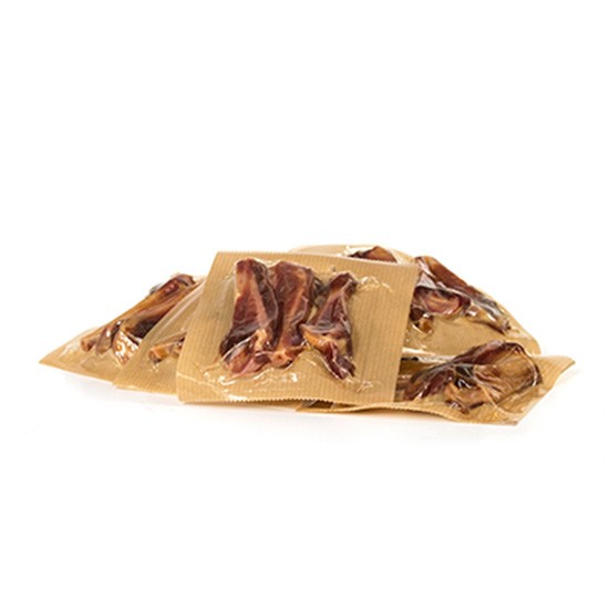 עצמות מעושנות, עשויות מחזיר ומכילות בשר אמיתי. העצמות ארוזות בוואקום לשמירה על הטריות.