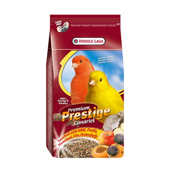 מזון לציפורים מסדרת פרסטיז’ פרמיום תוצרת ורסלה לגה בלגיה, חברה המתמחה בייצור מזון וציוד לחיות מחמד.