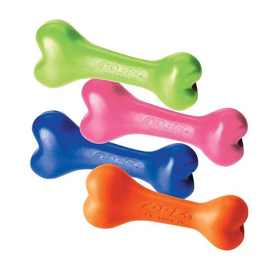צעצוע לכלב רוגז עצם גומי מגיע ב-3 מידות: קטן, בינוני וגדול, וב-5 צבעים: כחול, אדום, ירוק ליים, ורוד, כתום.