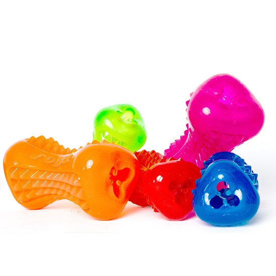 צעצוע לכלב רוגז עצם גומי מגיע ב-3 מידות: קטן, בינוני וגדול, וב-5 צבעים: כחול, אדום, ירוק ליים, ורוד, כתום.