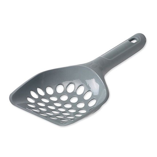 כף מחוררת קלת משקל לאיסוף צואה מכלי צרכים של בעל החיים עשויה מפלסטיק גמיש.