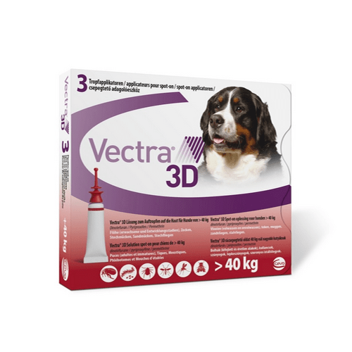 מארז 3 אמפולות וקטרה 3d לקטילה ולמניעה של פרעושים וקרציות לכלב ענק ששוקל 40-60 ק”ג.